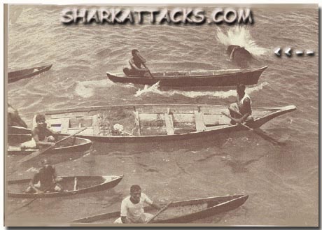 his leg in 1964, hold open the mouth of a Great White shark- the species