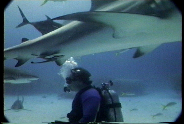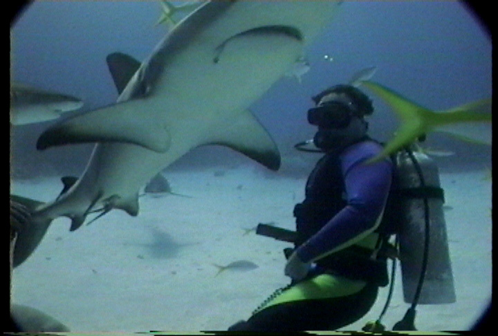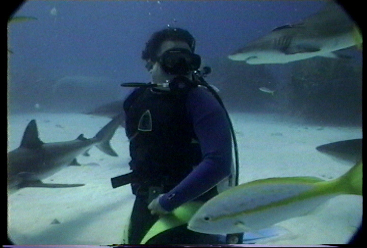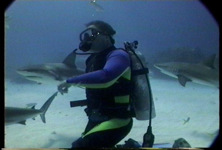 SURROUNDED by a swarm of Caribbean reef sharks off the Bahamas, Jim Morris waits patiently as the carnivorous fish brush against him, nudging the diver for the handouts of bloody fish they have come to expect. The pack of 12 sharks moves gracefully in a hypnotic underwater ballet, circling in a smooth flow of gray, while Morris sits on the ocean floor.